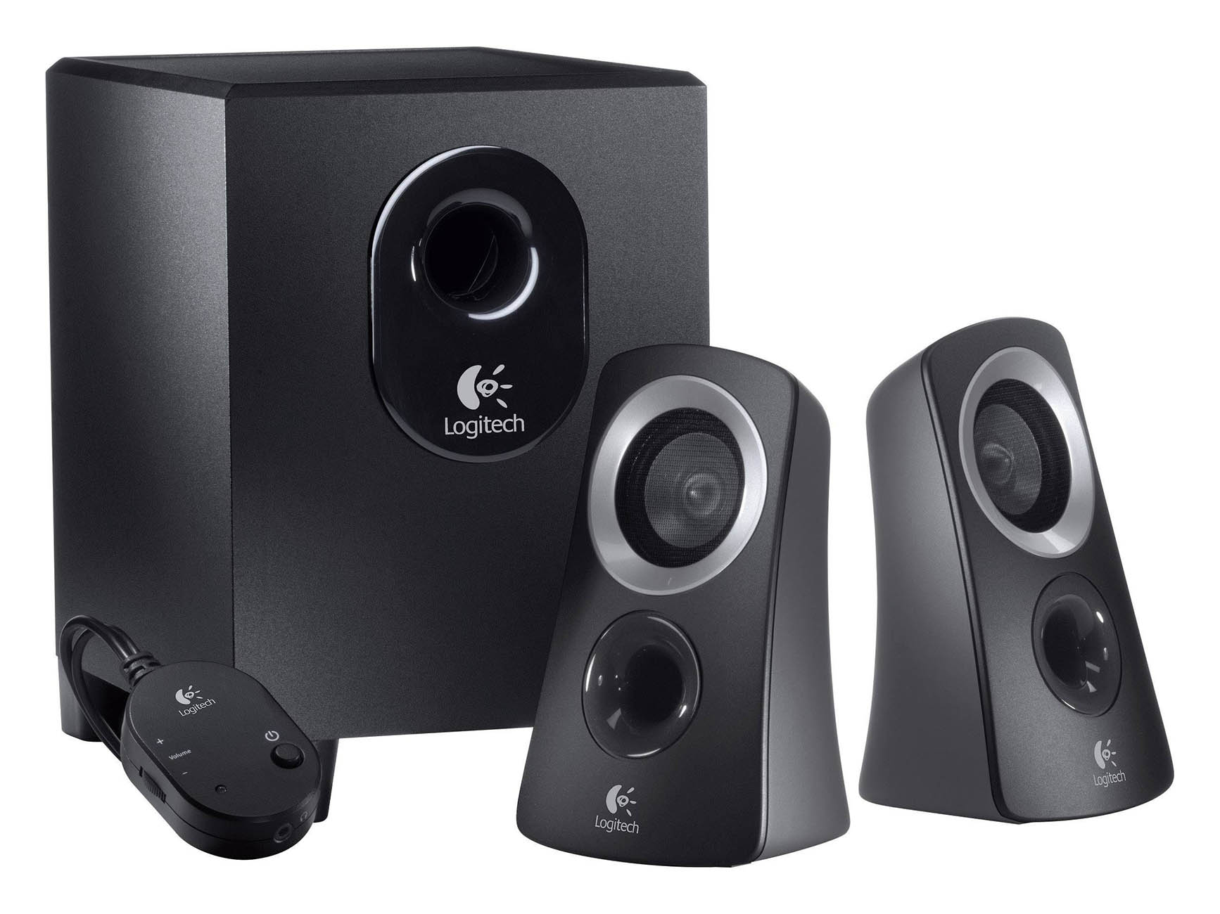Sistema de alto-falantes Logitech ® Z313: A maneira mais fácil de relaxar e curtir sua música. O prático botão de controle incluído facilita a variação do volume dos alto-falantes, e você também pode conectar um par de fones de ouvido. Seus 25 watts (RMS) de potência preenchem toda a sala com um som poderoso e equilibrado. O subwoofer compacto cabe em espaços apertados, proporcionando um som mais profundo quando você deseja sentir a batida da música