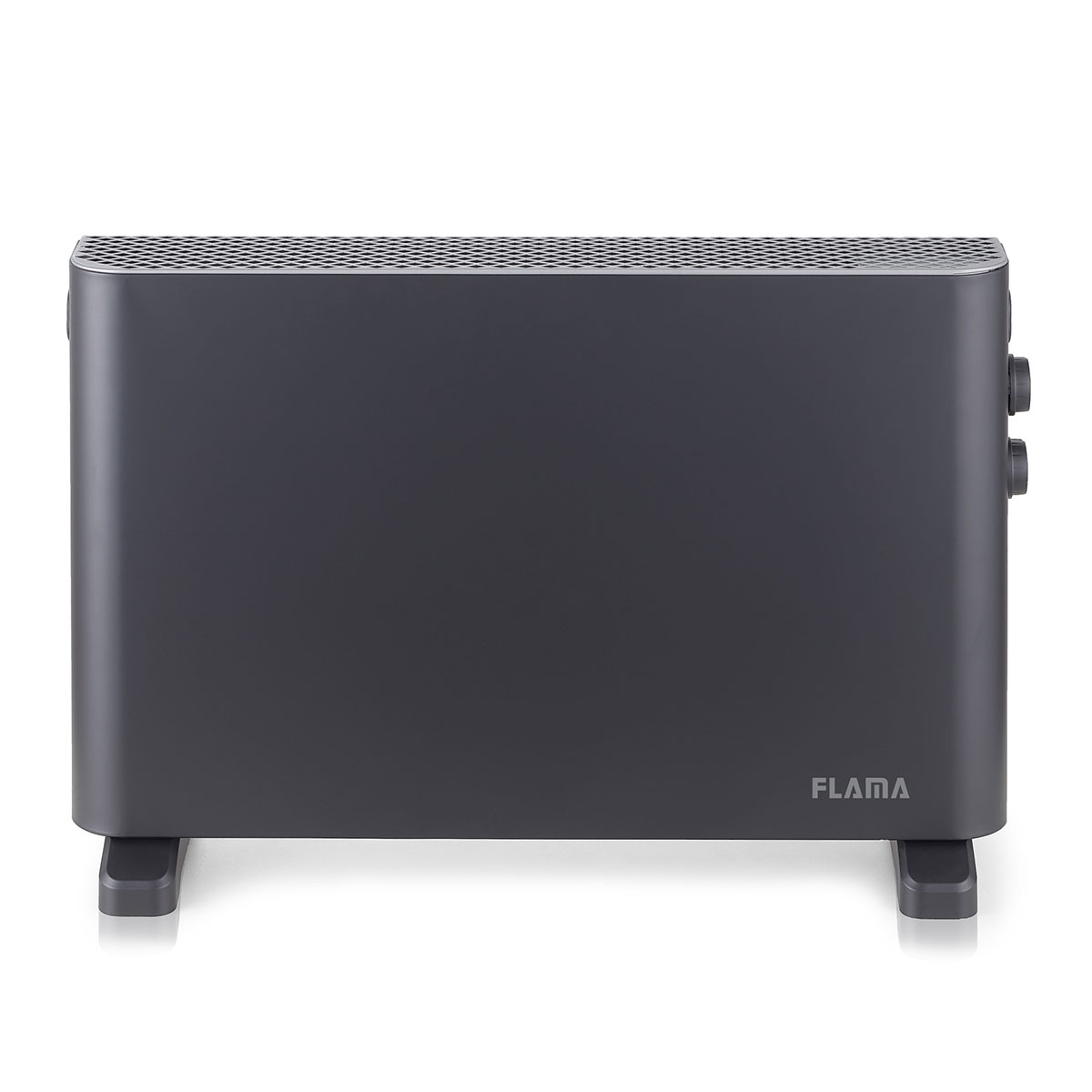 Flama Convetor 2500W Ref. 2385FL 2 níveis de aquecimento: 1000W 2000W Rápida dissipação de calor Pega de transporte Potência 2000W 2 Níveis de Potência Proteção de Sobreaquecimento Automática Termóstato Regulável Pega de transporte
