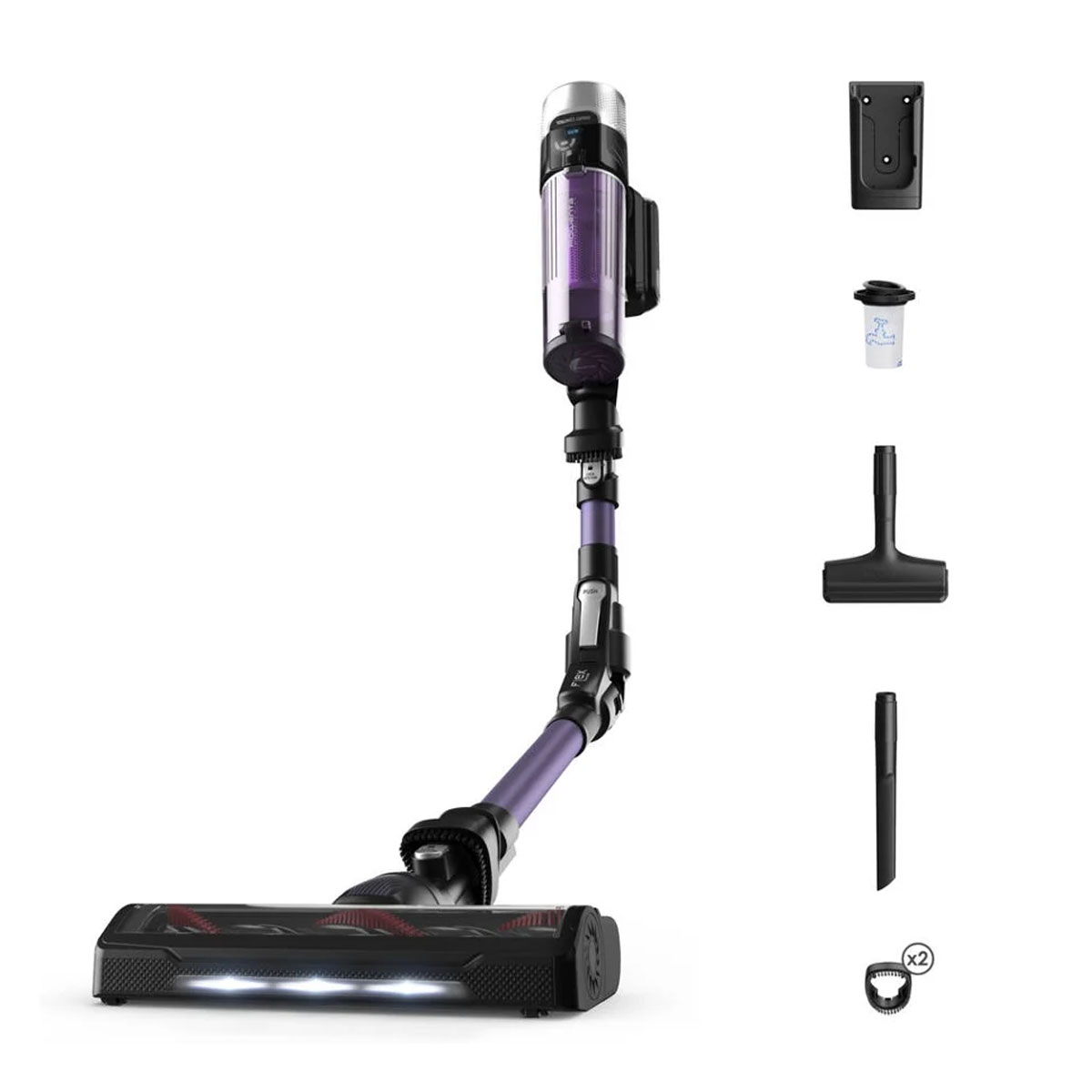 Potência: 200 W Voltagem: 18 V Reservatório: 0,4 L Autonomia: 45 minutos Cor: Preto / Lilás Acessórios Incluídos: Escova clássica Escova para sofás Escova para frestas e rodapés Escova pelos longos Base de carregamento Garantia: 3 anos