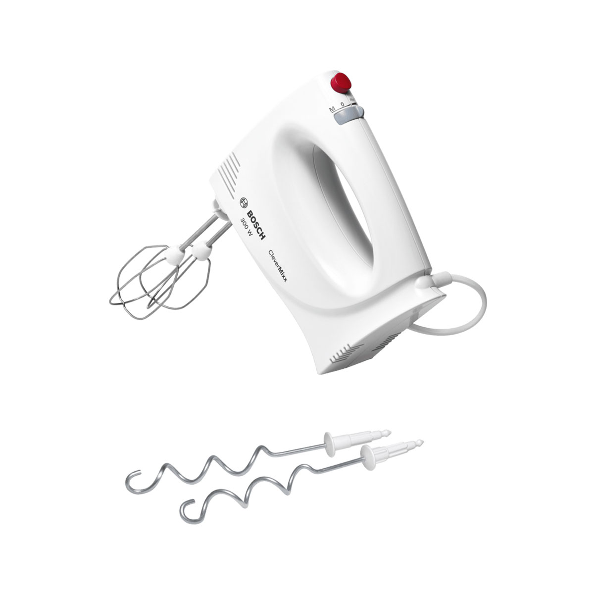 Bosch Batedeira sem taça MFQ-3010 Potencia 300W Botão independente para expulsão de varas 2 varas aço inoxidável para amassar 2 varas em aço inoxidável para bater e mexer Enrolador de cabo