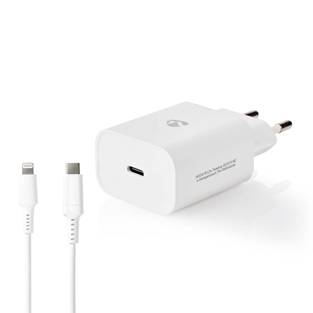Este carregador de parede rápido Nedis® com USB-C ™, 20 W e entrega de energia permite que você carregue qualquer dispositivo USB e USB-C, como smartphones, tablets, Nintendo Switch e outros dispositivos semelhantes a partir de uma tomada elétrica. O cabo USB-C ™ para Lightning facilita o carregamento rápido do seu iPhone. Você pode carregar um iPhone 8 ou posterior em 30 minutos de 0 a 50%. O cabo é certificado pela Apple "Padrões feitos para iPhone" para garantir a compatibilidade com todos os dispositivos iOS. Graças ao seu tamanho reduzido, é a solução perfeita para carregamento portátil durante viagens.