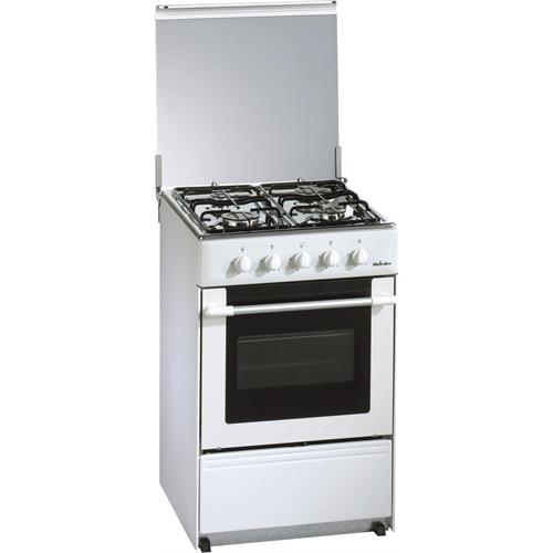 Tipo de Mesa: Aço inoxidável Queimadores/Zonas: 4 G Forno: Gás Capacidade do Forno: 55 Litros Classe Energética: A Largura: 53,5 cm Profundidade: 56,5 cm Acessórios Incluídos: Grelha e tabuleiro de recolha de molhos Cor: Branco Garantia: 3 anos