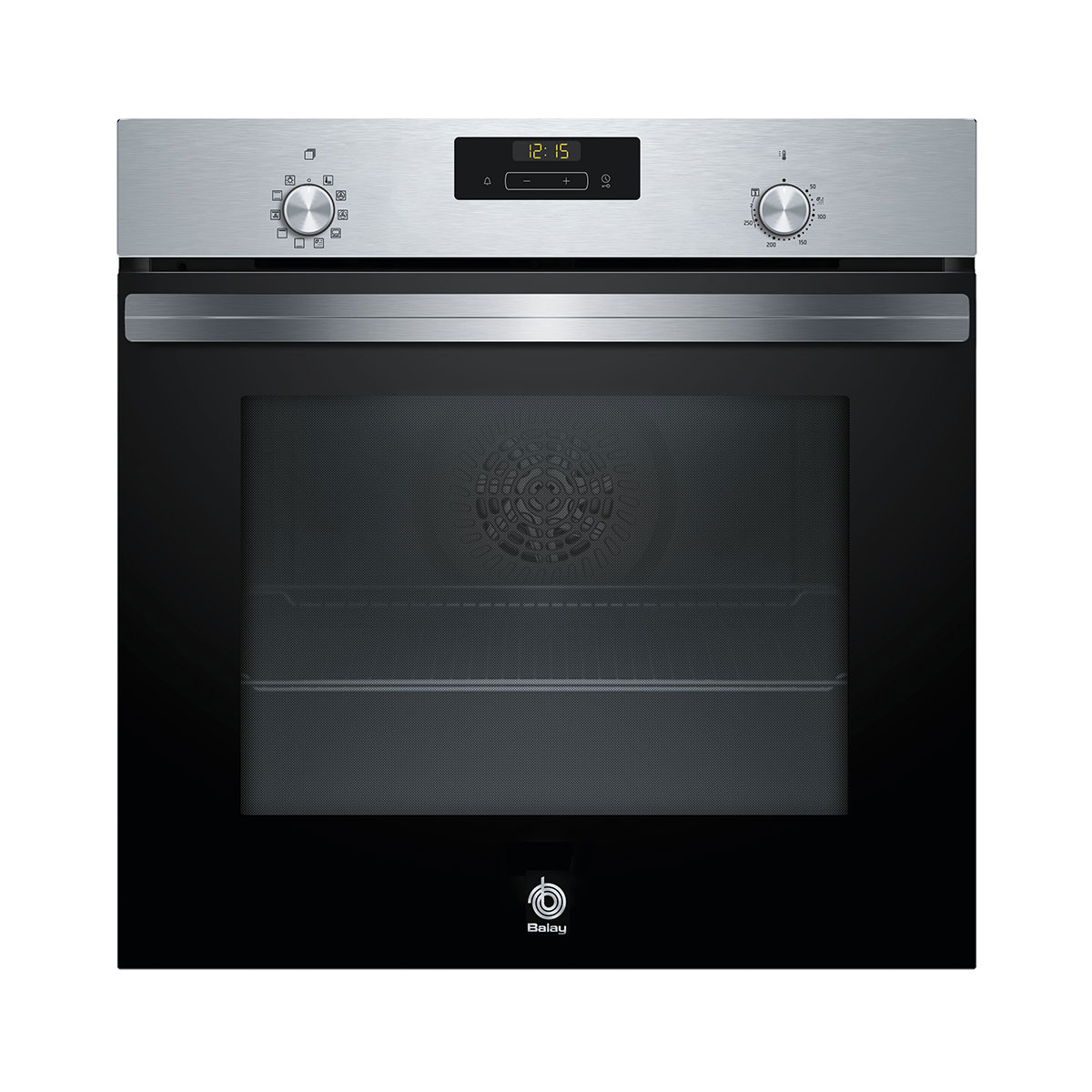 Forno multifunções 60 cm, inox, 71 litros, A, controlo Comfort, 7 modos de aquecimento, assistente de limpeza aqualítica, raile Comfort com 1 nível, porta com 2 vidros, relógio electrónico com programação, comandos embutíveis