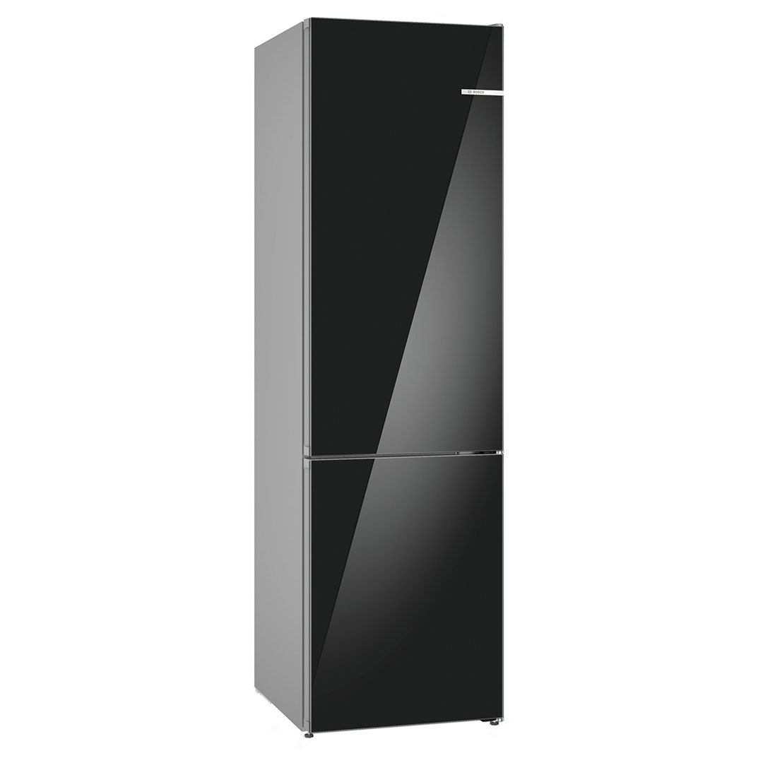 SER6, Combinado Twin NoFrost PerfectFit, Sistema MultiAirflow (metal), Portas em vidro preto, 203 x 60 x 66,5 cm, 363 (260 + 103) litros, C, 162 kWh, 35 dB, SN-T, 2 circuitos de frio independentes, 1 gaveta VitaFresh XXL, 1 gaveta VitaFresh 0ºC, Visor Led, Super refrigeração, Super congelação, Iluminação LED com SoftStart, Alarme sonoro e visual de porta frigorífico aberta , Suporte cromado para garrafas, FlexInterior, Puxadores verticais integrados