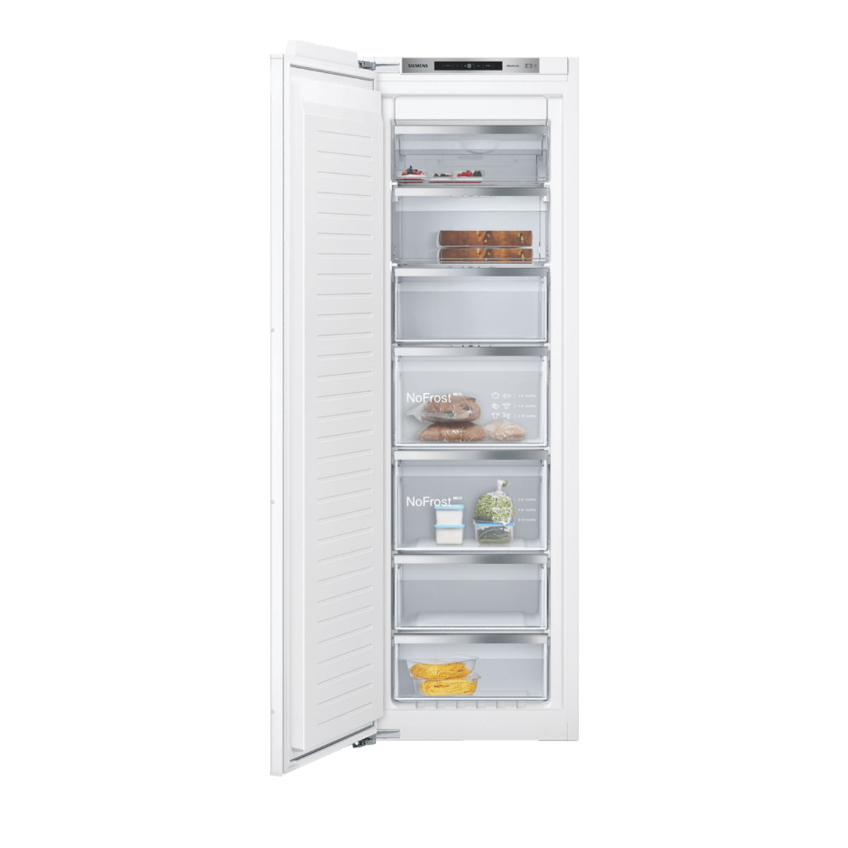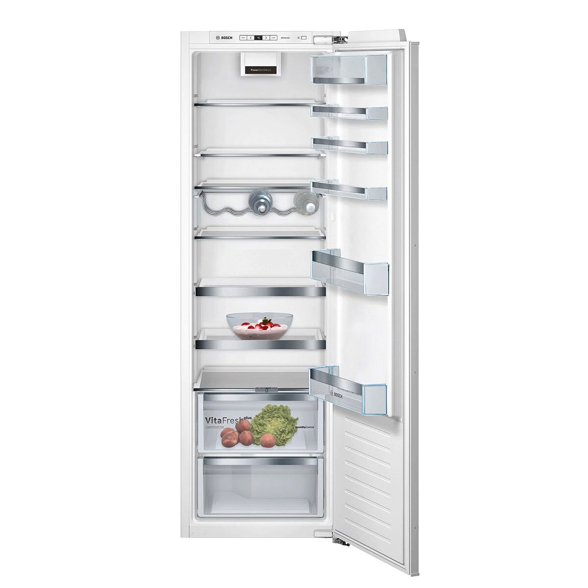 SER6, Frigorífico integrável Ventilado, 177,2 x 55,8 x 54,5 cm, Porta Fixa, 319 litros, E, 115 kWh, 37 dB, SN-T, 1 gaveta VitaFresh plus, 1 gaveta adicional, Visor Digital, Alarme sonoro de porta aberta, Super refrigeração, Iluminação LED, Suporte cromado para garrafas, Conjunto SBS com GIN81AEF0