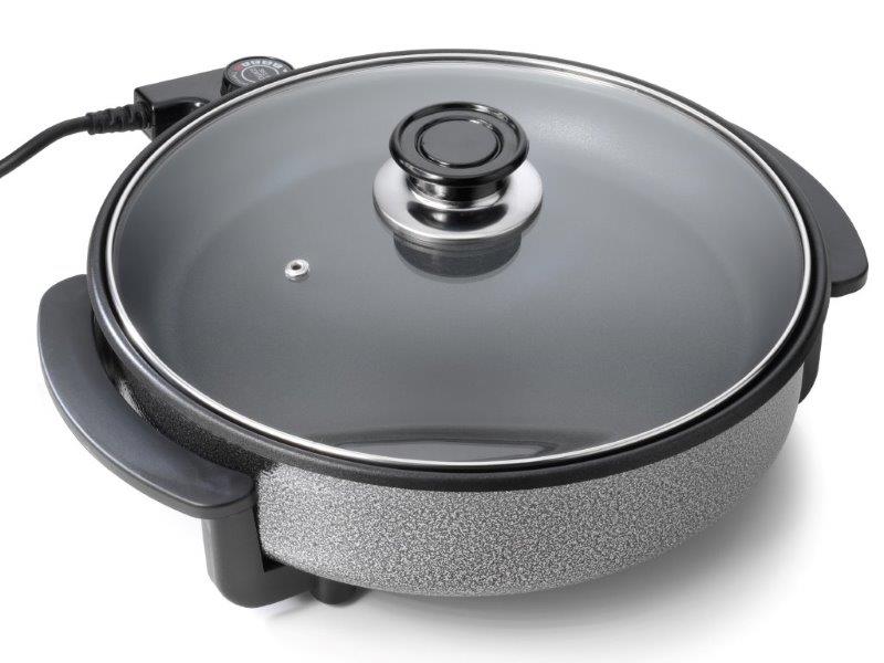 Neste grelhador multifunções pode preparar tudo, desde batatas a peixe! Cria a sua própria refeição! Tem o diâmetro de 30cm e está equipado com termóstato removível no cabo.