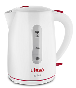 Ufesa Jarro térmico 1,7LT Ref. HA7616 Potência: 2200 W Capacidade de 1,7 litros Indicador de nível de água Interruptor de ligar / desligar Luz piloto Desconexão automática ao ferver