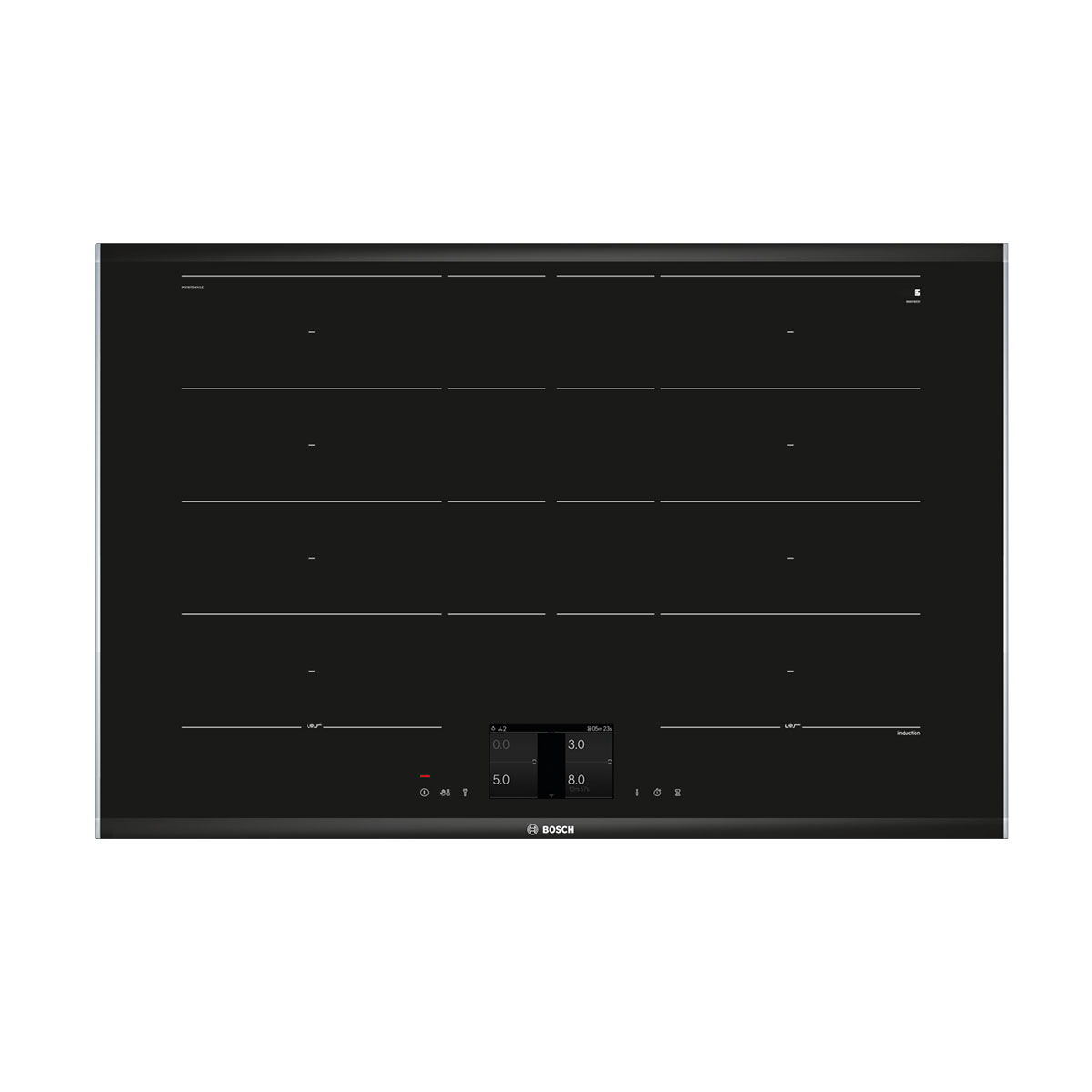SER8, Placa FlexInduction, 80 cm, Comfort Design, 2 zonas Flex+zona extensível, TFT-touchdisplay (17 níveis de potência), HC/conexão placa-exaustor, MoveMode, PowerTransfer, PerfectFry, PerfectCook, PowerBoost, PanBoost, Manter quente, programação do tempo, ReStart, QuickStart, ind. consumo energia