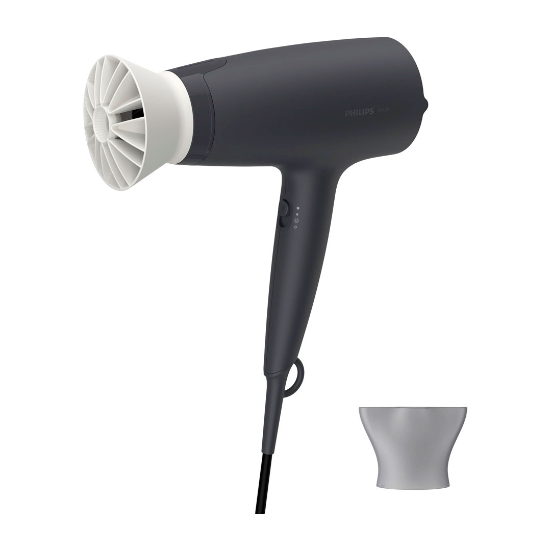Secador Compacto EssentialCare,1600W, motor DC, bico concentrator, 3 ajustes de Temperatura/Velocidade. Jacto de ar frio. Thermoprotect. Cabo de 1,8m. Acessório ThermoProtect