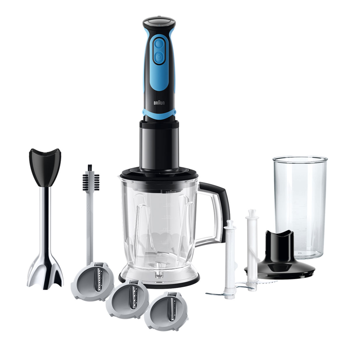 Braun Varinha 750W Copo processador/liquidificador de 1,25L com lâmina de corte e lâmina de picar gelo; 3 cones de corte para massa de vegetais: Linguine, Tagliatelle e Pappardelle